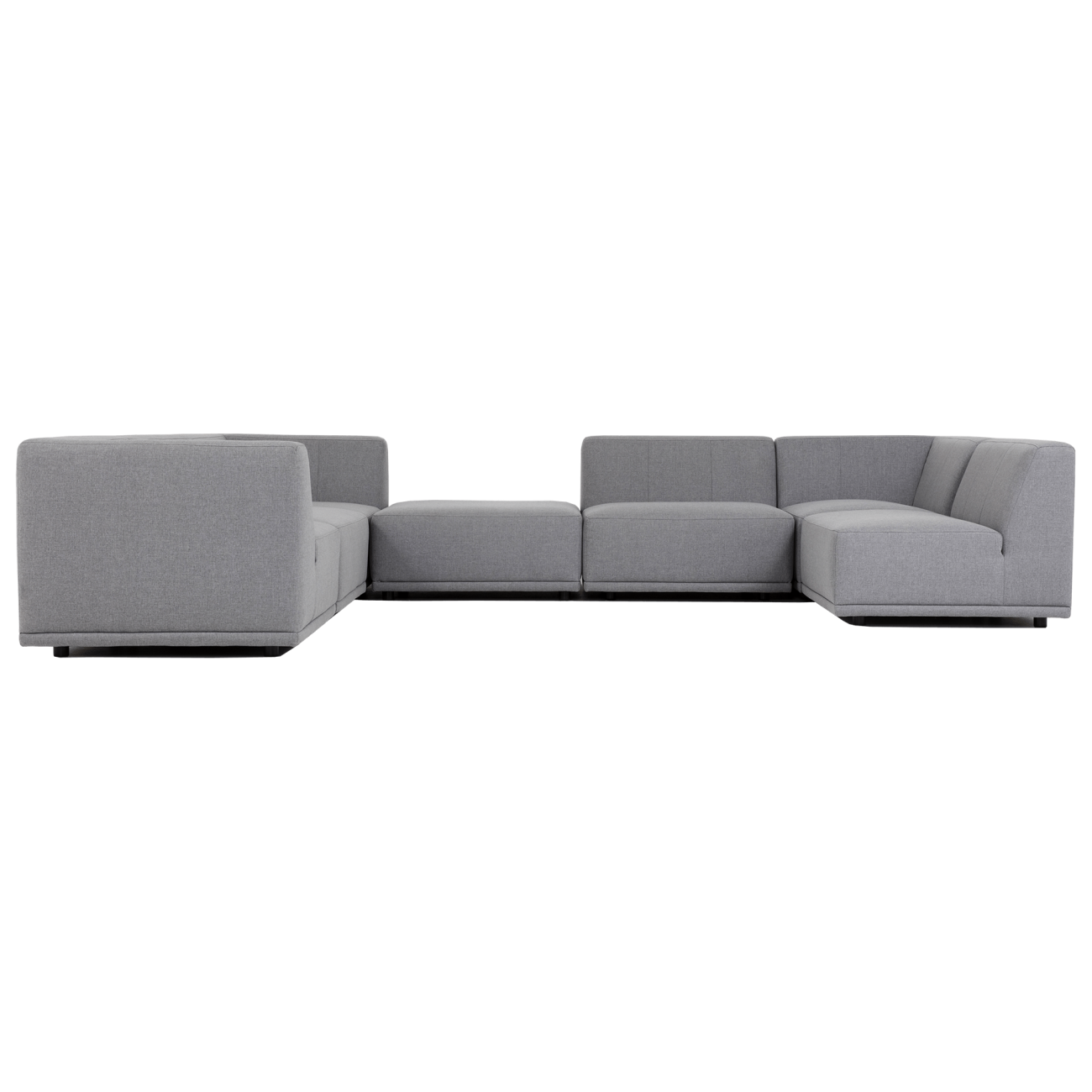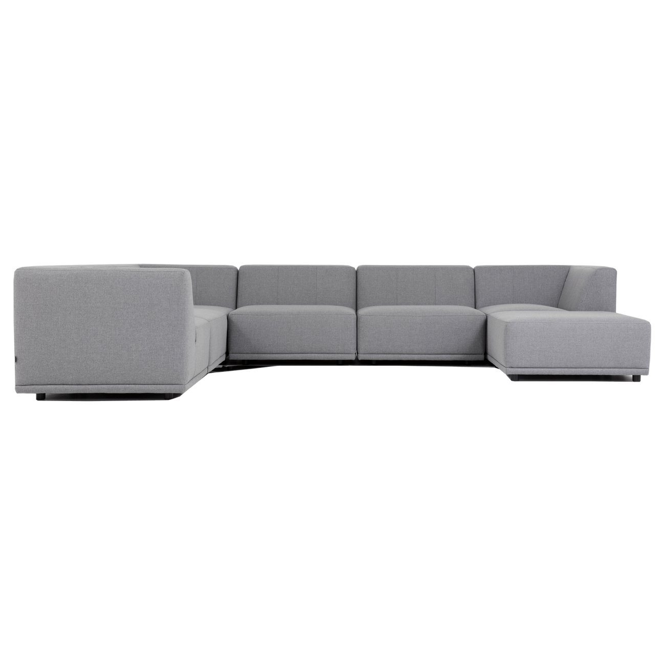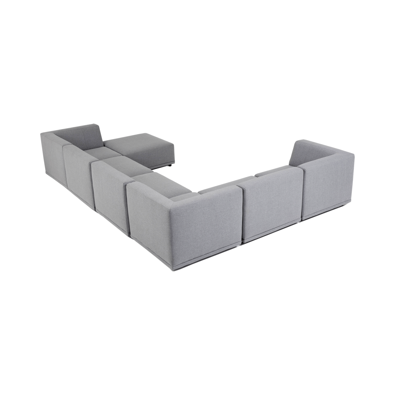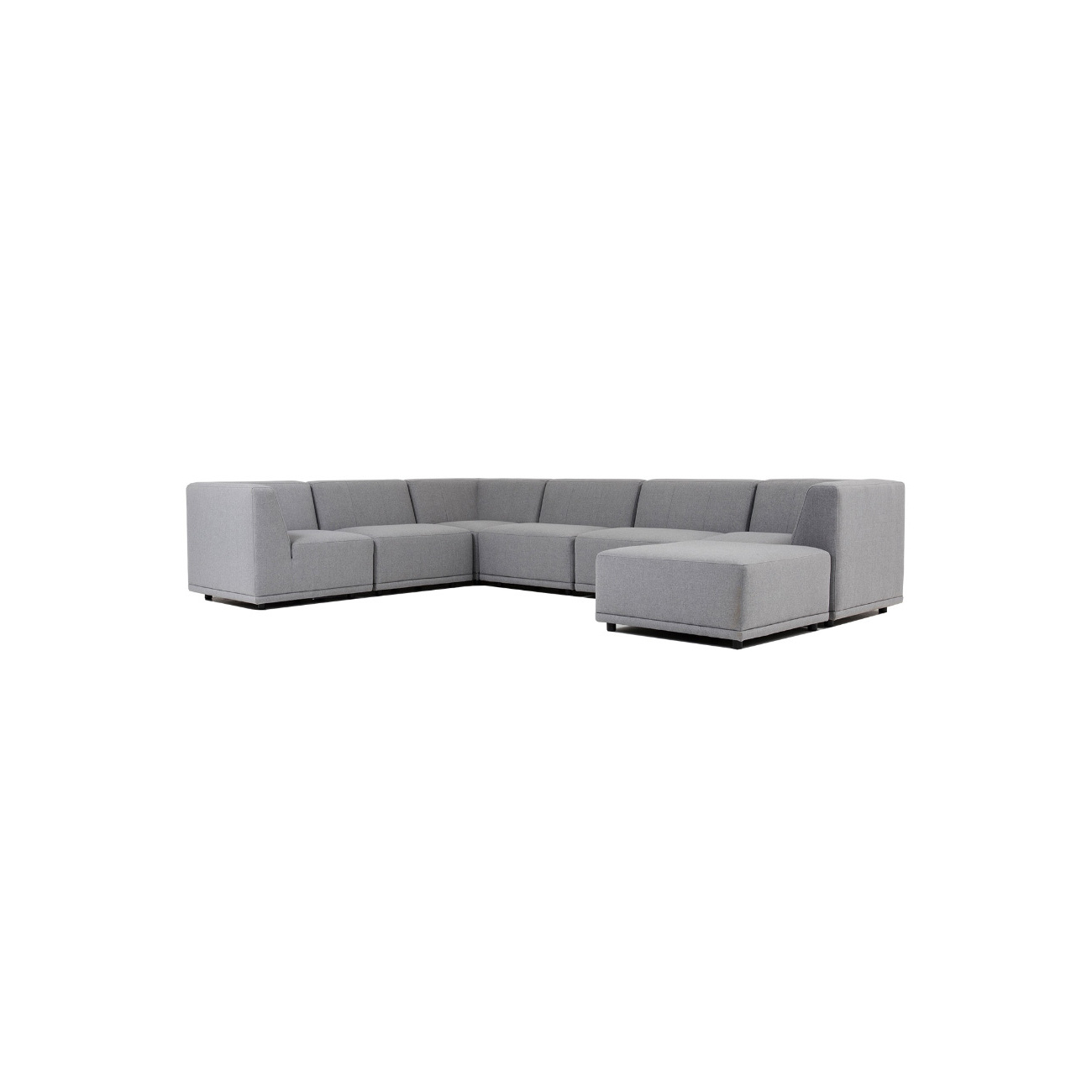 Denne store hjørnesofaen består av syv moduler: Hjørnemodul - midtmodul - midtmodul - hjørnemodul - midtmodul - hjørnemodul - puff.